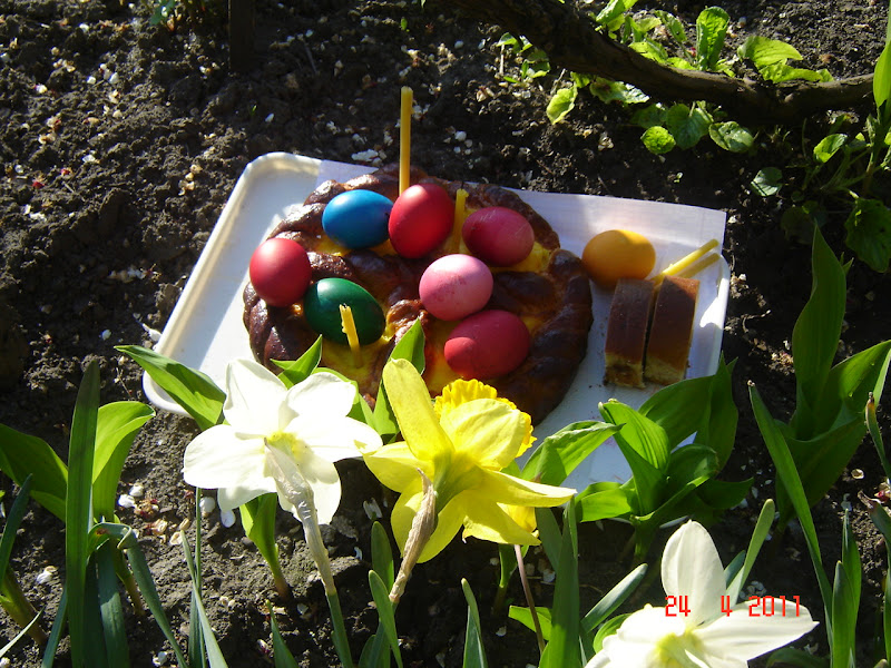 Iar dimineata, pasca sfintita va fi aranjata felii, ouale sfintite puse in cosulet.